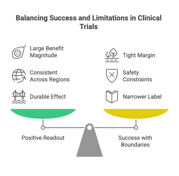 More often, the win has edges. The endpoint is met, but the margin is tight. Safety introduces constraints. The eventual label may be narrower than the development team expected.